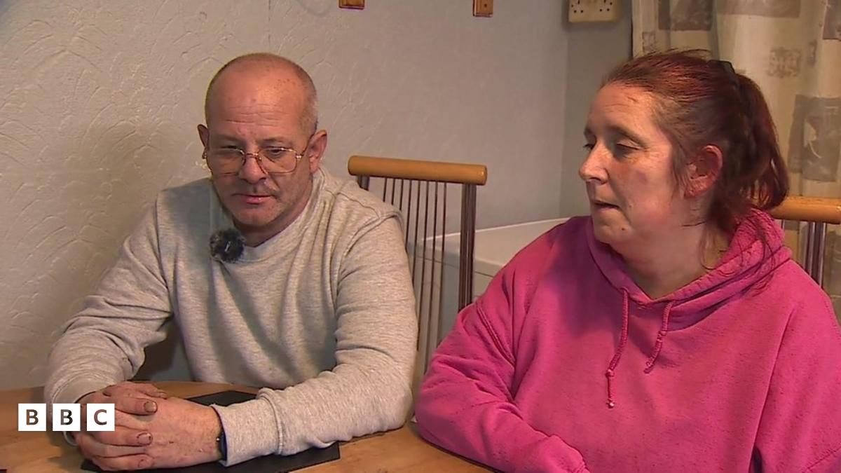 Mae costau byw yn cynyddu, ond nid cyflogau, ac mae'r cwpwl yn teimlo'r esgid yn gwasgu.