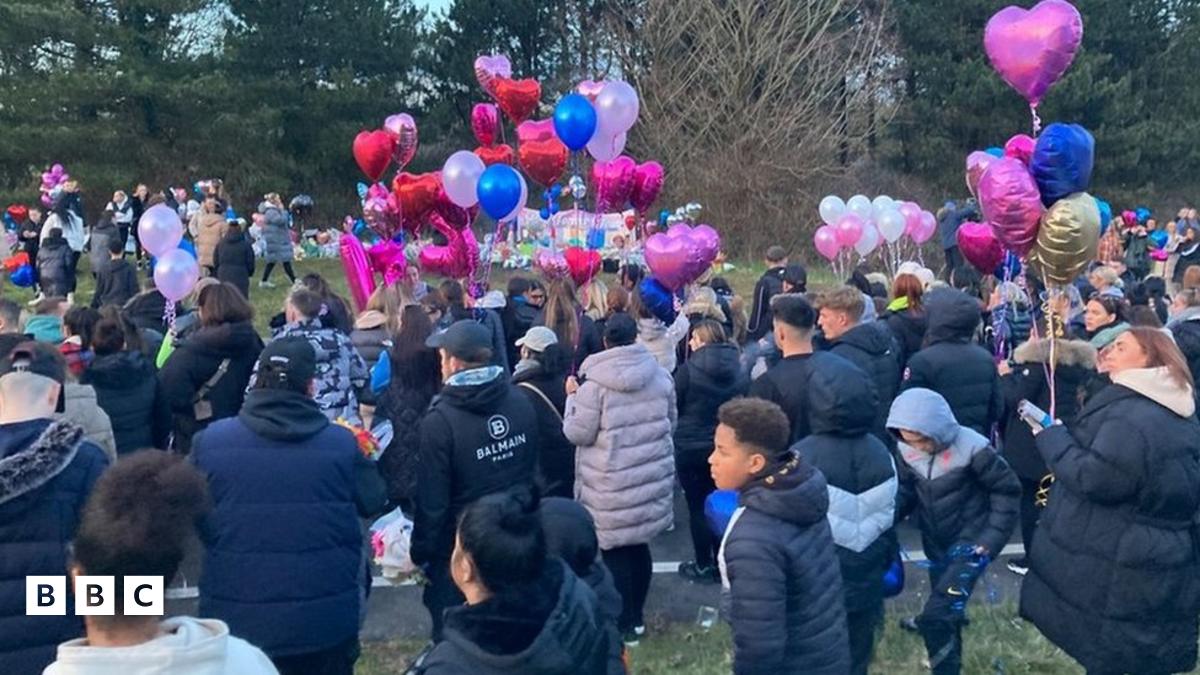 Daeth cannoedd o bobl at ei gilydd ger safle'r gwrthdrawiad nos Fawrth