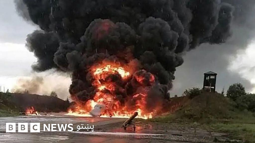 پر خواله رسنیو خپرو شویو تصویرونو کې چې د بيبيسي څېړنو هم تایید کړي، یو توپولېف-۲۲ بم غورځونکی ښکاري چې د اور لمبو کې سوځي.