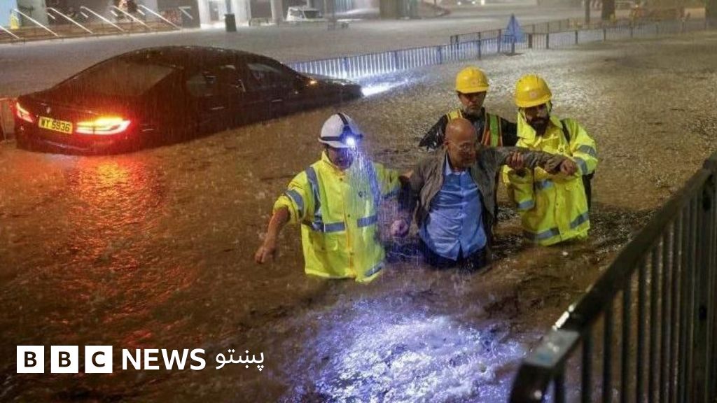 د تېرې شپې د هانګ کانګ د واټونو خپاره شوي انځورونه ښیي، چې سخت باران سړکونه په سېندونو اړولي دي د پېر او پلور مرکزونه یې له اوبو ډک کړي دي.