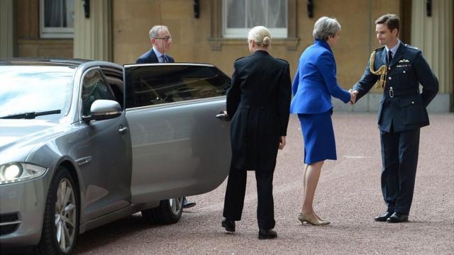 د بریتانیا لومړۍ وزیره تیرېزا مې ټاکنو کې تر ماتې خوړلو وروسته پر ځايي وخت ۱۲:۳۰ بجو بکینګهام ماڼۍ کې له ملکې سره ولیدل او د نوي حکومت جوړېدو اعلان یې وکړ.