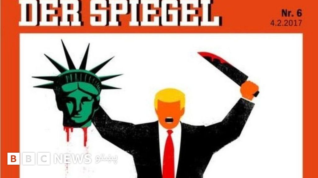 د جرمني پر مشهورې اونیزې "دیر شپیګل" له دې کبله توندې نیوکې شوې، چې د مجلې پر لومړۍ پوښتۍ یې د امریکا د ولسمشر ډونلډ ټرمپ یو انځور رسم کړی چې د ازادۍ د مجسمې سر یې غوڅ کړی او له پورته نیولې چړې یې وینې څاڅي.