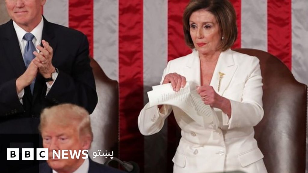 د امریکا ولسمشر ډونلډ ټرمپ تر کلنۍ وینا وروسته، د امریکا د ولسي جرګې مشرې نانسي پلوسي د ټرمپ د وینا هغه پاڼې څېرې کړې چې نوموړي یې له مخې خبرې کړې وې.