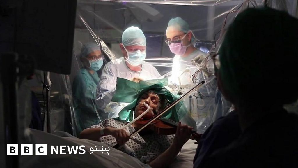 د لندن کېنګ کالج روغتون کې یوې ناروغۍ د هغې له ماغزو د تومور لیرې کولو او جراحۍ پرمهال وایلون غږاوه. نور وېډیو کې کتلی شئ.