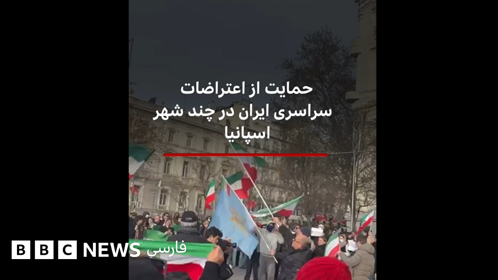 تصاویری از تجمع ایرانیان در چند شهر اسپانیا از جمله مادرید، بارسلون، والنسیا در روز ۱۰ ژانویه مطابق با ۲۰ دی ۱۴۰۴ به دست بیبیسی رسیده است.