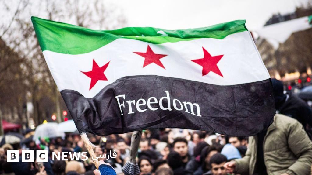 توضیح تصویر، سوری‌هایی ساکن شهر اِسن آلمان روز هشت دسامبر با «پرچم انقلاب» مخالفان سوری گرد آمدند تا سقوط حزب بعث سوریه را که ۶۱ سال بر این کشور حکومت کرده بود، جشن بگیرند
