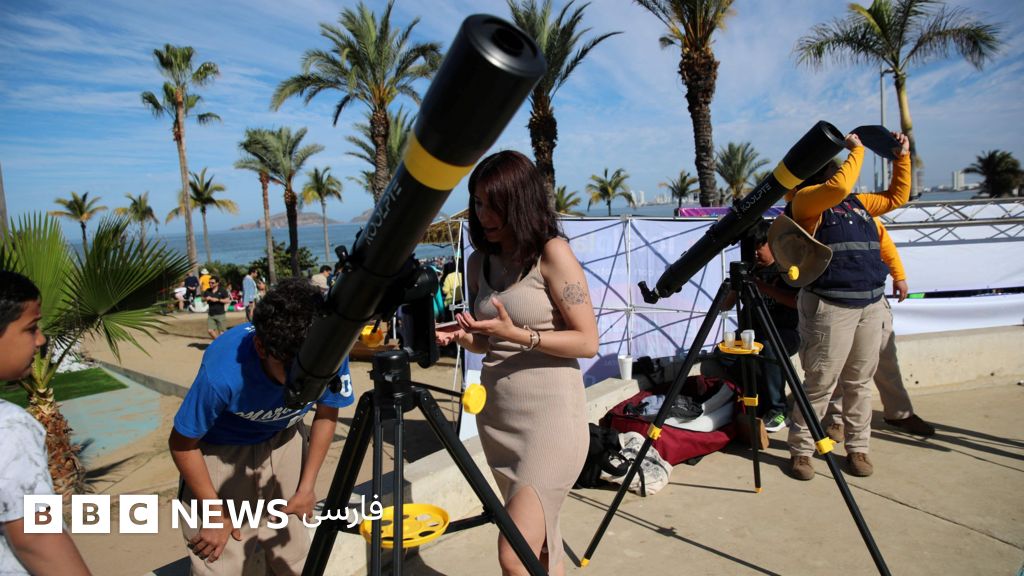 توضیح تصویر، تجمع مردم و آماده کردن تلسکوپها برای دیدن این پدیده نادر در مزاتلان در ایالت سینالوآ مکزیک