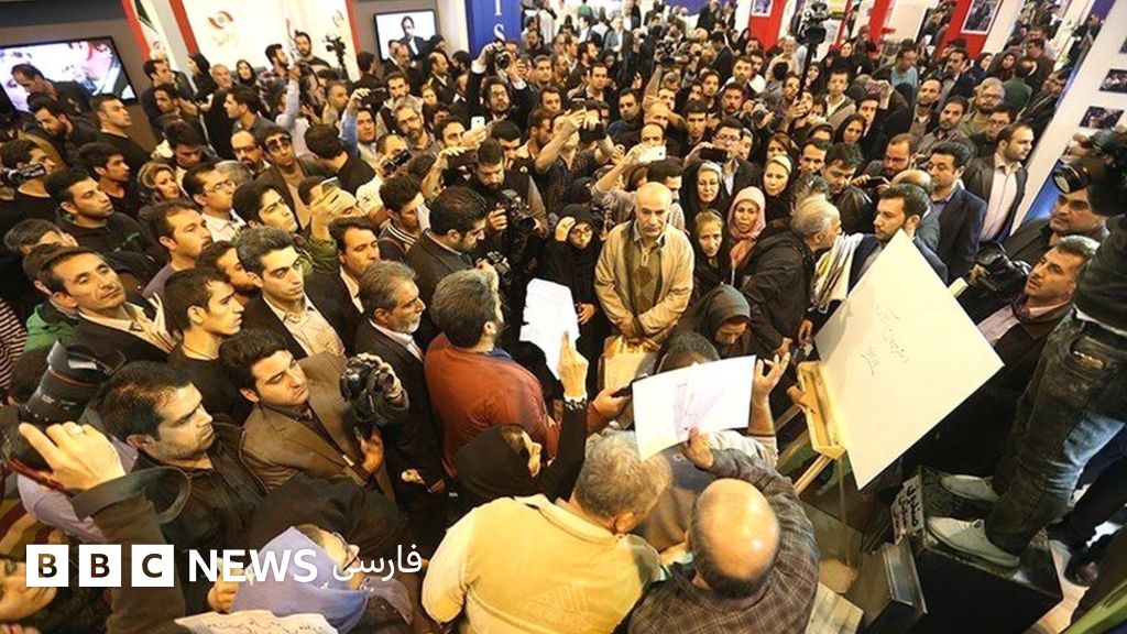 در تصاویری که از این تجمع منتشر شده دهها نفر در حال اعتراض به ولیالله سیف، رئیس بانک مرکزی دیده میشوند و به نظر میرسد که آقای سیف قصد دارد به سرعت محل نمایشگاه را ترک کند.