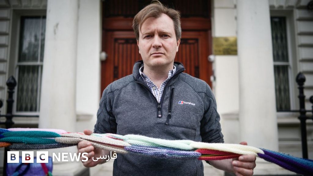 ریچارد رتکلیف، همسر نازنین زاغری رتکلیف، شهروند ایرانی-بریتانیایی زندانی در ایران مقابل سفارت جمهوری اسلامی ایران در لندن اعتصاب غذا کرده است.