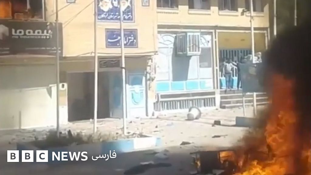 توضیح تصویر، معترضان روز شنبه دفتر امام جمعه لردگان را به آتش کشیدند