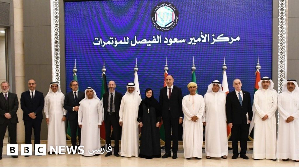 توضیح تصویر، نمایندگان سیاسی آمریکا، سه کشور اروپایی و نمایندگانی از شورای همکاری خلیج فارس در ریاض پایتخت عربستان سعودی/ عکس از توییتر رابرت مالی