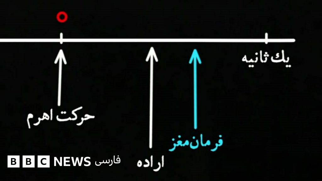اهرمی به شما میدهند و میگویند هر وقت خواستید این اهرم را تکان بدهید. یک ساعت بسیار بزرگ هم جلوی شماست که یک نقطه نورانی رو آن حرکت میکند - که بتوانید زمان را با دقت گزارش کنید. شما باید به نقطه نورانی نگاه کنید و به خاطر بسپرید که در کدام لحظه تصمیم گرفتید اهرم را حرکت بدهید. (و آن زمان را در پایان آزمایش گزارش کنید). از طرف دیگر، یک ساعت هم زیر این اهرم قرار دارد که لحظه حرکت آن را ثبت میکند. و میدانیم شما کی تصمیم گرفتید. فعالیت مغزیتان را هم ثبت میکنیم. در واقع میتوانیم حساب کنیم کی فرمان حرکتی آن حرکت در مغز شما صادر شده. خب توالی زمانی اینها - اگر به شکل سنتی آن در نظر بگیریم - این خواهد بود: من اراده کردم، مغزم فرمان حرکتی داد، و بعد اهرم حرکت کرد. اما وقتی در عمل نگاه میکنیم میبینیم ترتیب برعکس است: فرمان حرکتی در مغز صادر میشود، من اراده میکنم - یا فکر میکنم اراده میکنم - و بعد اهرم حرکت داده میشود.