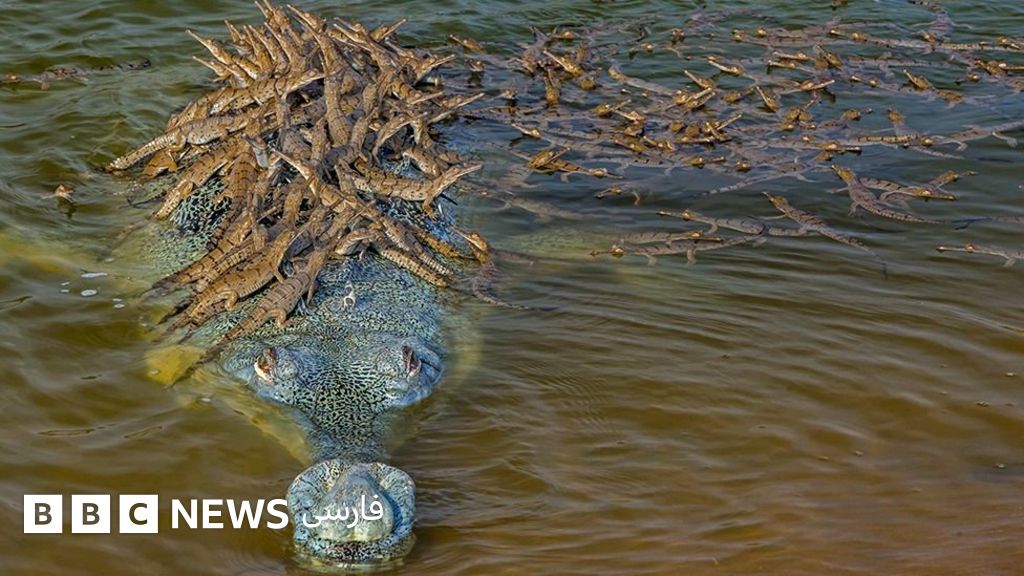 حتما ناچار شدید دوباره نگاه کنید چون شاید در اولین نگاه متوجه نشدید که پشت این تمساح نر پر از بچه تمساح است.