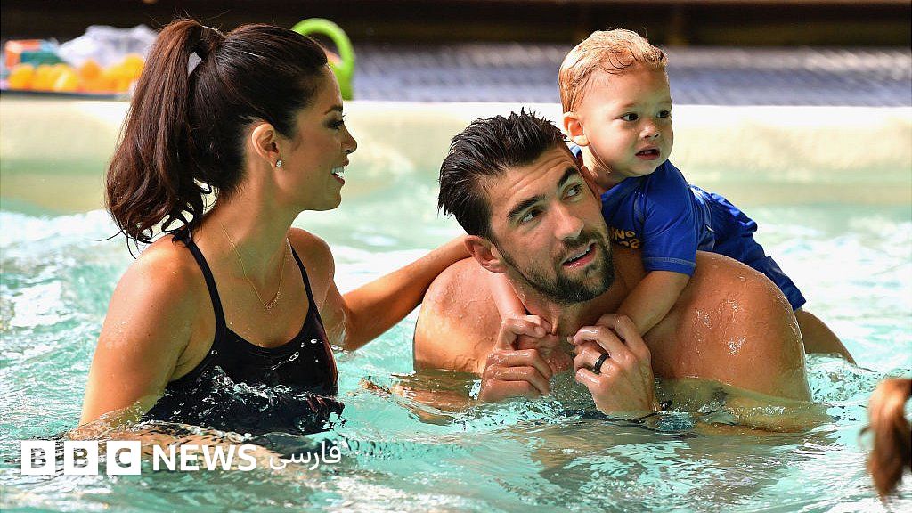 توضیح تصویر، مایکل فلپس در کنار همسر و پسرش