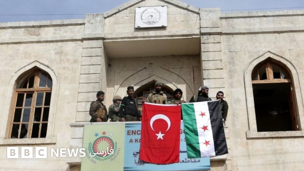 تصاویری منتشر شده که نشان میدهد سربازان متحد ترکیه پرچم این کشور را در مرکز عفرین در دست دارند.