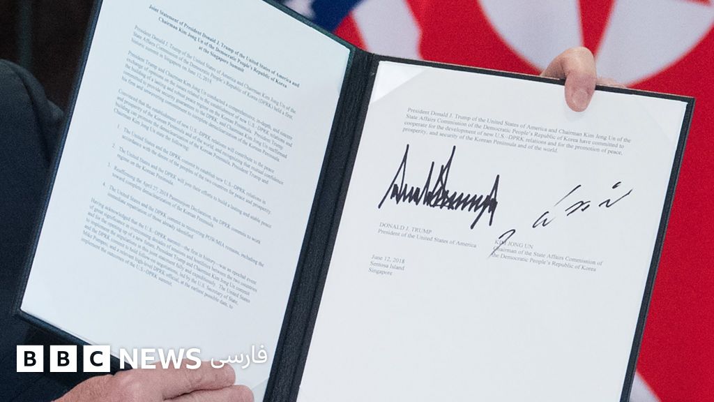 دونالد ترامپ، رئیس جمهور آمریکا و کیم جونگ اون، رهبر کره شمالی بعد از دیداری تاریخی در سنگاپور سندی را به طور مشترک امضا کردند. ترجمه متن کامل این سند را به فارسی بخوانید:
