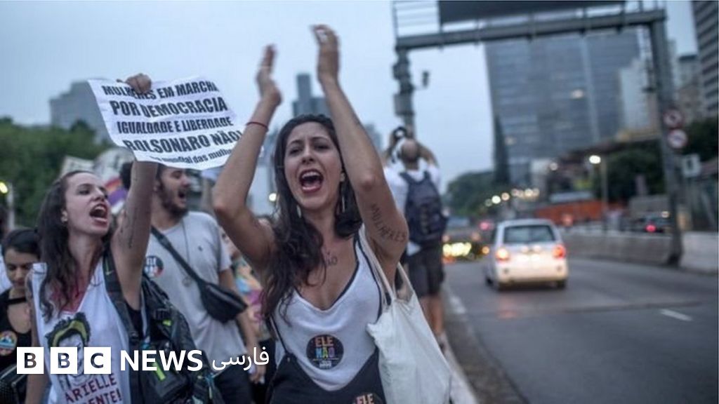 دهها هزار زن درشهرهای برزیل علیه ژایر بالسونارو، نامزد پیشتاز انتخابات ریاست جمهوری برزیل که گرایش راست گرایانه افراطی دارد دست به تظاهرات زدهاند.