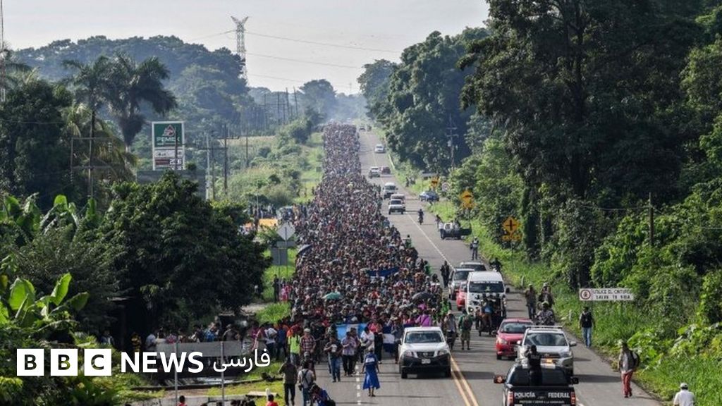 کاروانی حامل هزاران مهاجر در حال حاضر از خاک مکزیک عبور میکند تا وارد آمریکا شود.