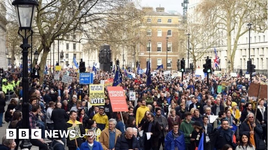 صدها هزار نفر از مخالفان خروج بریتانیا از اتحادیه اروپا (برگزیت) امروز (شنبه ۲۳ مارس) از مرکز لندن به سمت پارلمان راهپیمایی کردند.