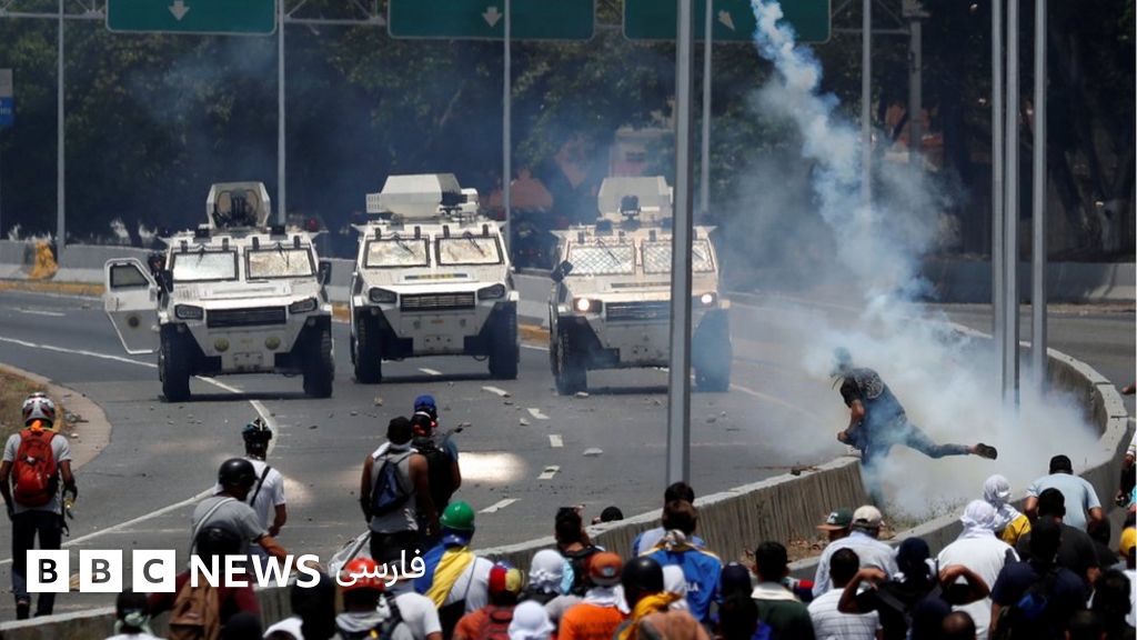 تازهترین تصاویر از کارکاس، پایتخت ونزوئلا درگیری میان معترضان نیرهای نظامی را نشان میدهد. در بخشی از این تصاویر یک خودروی زرهی از روی تعدادی از معترضان رد میشود و آنها را زیر میگیرد.