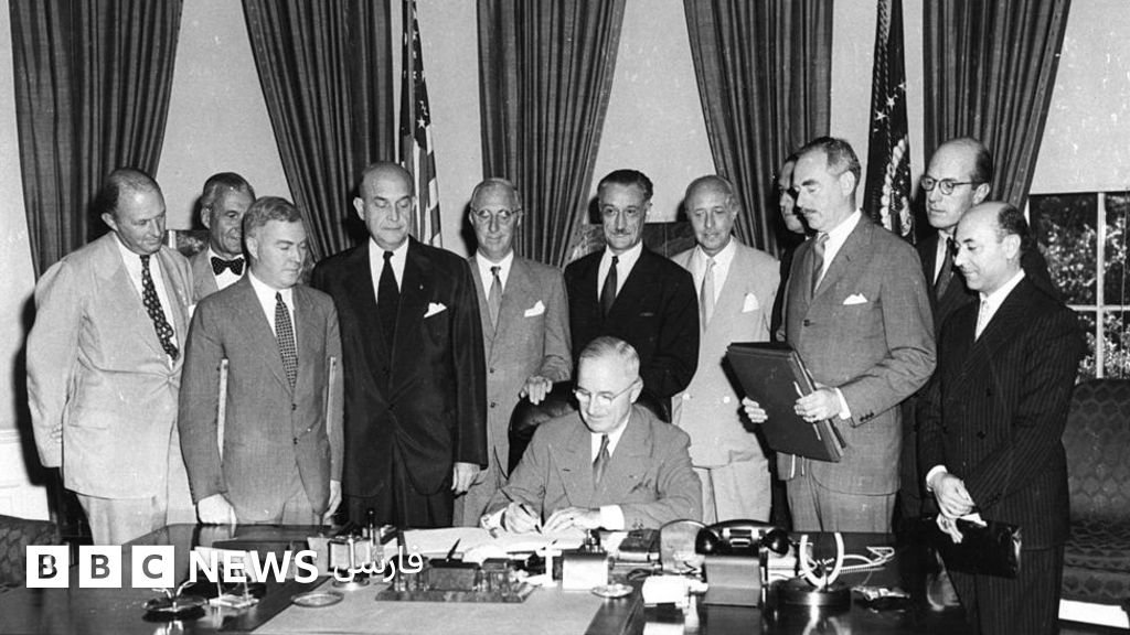 پیمانی که تمام اعضا را زیرِ چترِ یک سیستم بازدارندهی اتمی گرد میآورد و بازوی دفاعی آمریکا را تا مرزهای اتحاد شوروی در شمال و شرق اروپا گسترش میداد. ناتو، سازمان پیمان آتلانتیک شمالی قد برافراشت و در پهنه جهانی با اتحاد جماهیر شوروی پنجه در پنجه افکند. هری ترومن در نشست تاسیس ناتو در جمع رهبران و نمایندگان ۱۲ کشور امضا کننده پیمان ناتو گفت: "امروز مسجل است و فردا محتوم که مردم جهان در جستجوی صلح اند و آزادی."