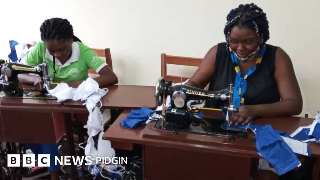 "Ma contribution na for design masks, dem change for use elastic for use bias for de masks dem weh de centre di share'am for pipo", Takang Olivia tell BBC News Pidgin.