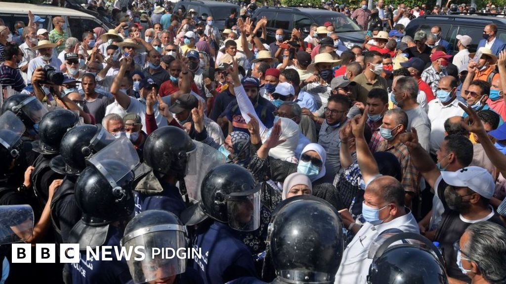 Tunisia pipo dey protest for many tins especially anger sake of how di goment dey take handle di current increase in Covid-19 cases plus di economic and social palava wey di kontri dey face.