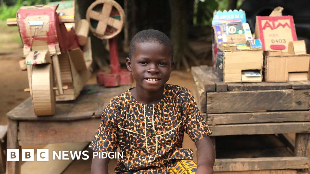 Chigozie Chika: 10 year old boy go viral afta e use carton build ATM machine, power bike and oda tins