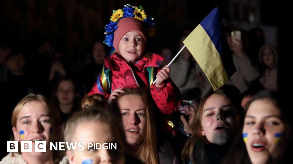Video show as pipo for di streets fly di Ukraine national flag and dey chant as di Kyiv troops land.