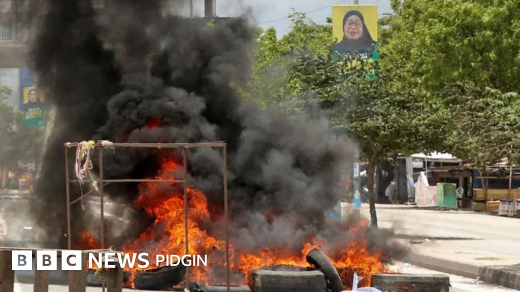 Hundreds of demonstrators don also cross enta Kenyan territory, dem block roads, light bonfires and tear posters of President Samia Suluhu Hassan wey dey along di way.