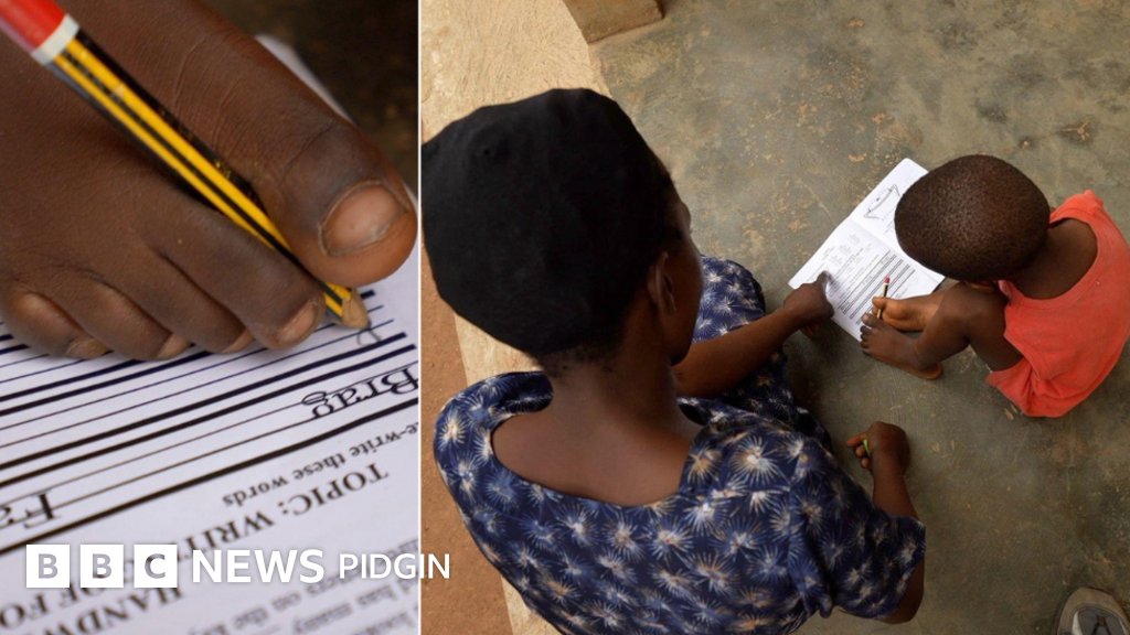 Witout hand, little Shindara dey use im leg write and im dream to become a lawyer always dey for im mind.