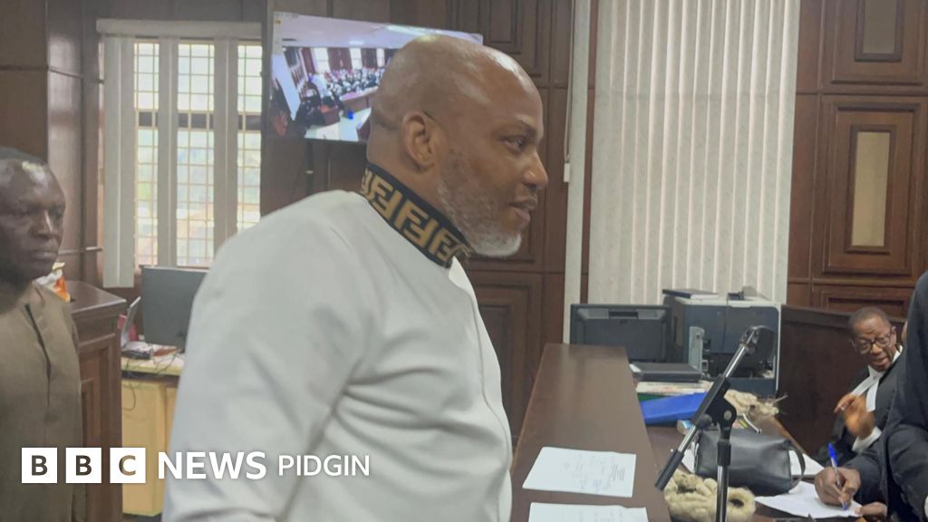 Kanu, di leader of di indigenous People of Biafra (Ipob), a group wey dey agitate for di separation of di southeast region of Nigeria to bicom dia own independent kontri.