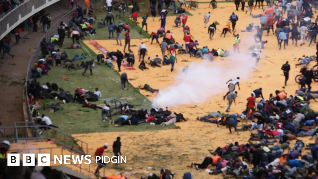 Just few mintes later na im large group of pipo push enta one gate for di arena wey make di police fire tear gas. Dis cause plenti masses of mourners to start to dey run out.