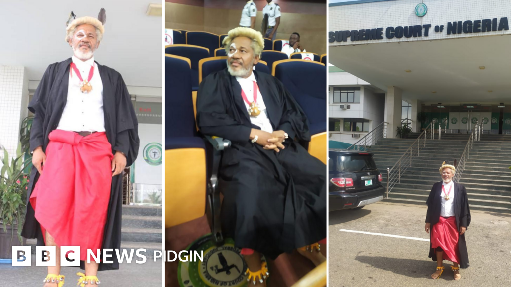 Di human right s lawyer neva tok im tori finish o, e narate to BBC Pidgin how im collegues and oda pipo wey see am for Supreme Court wan 'pick race' sake of im dressing.