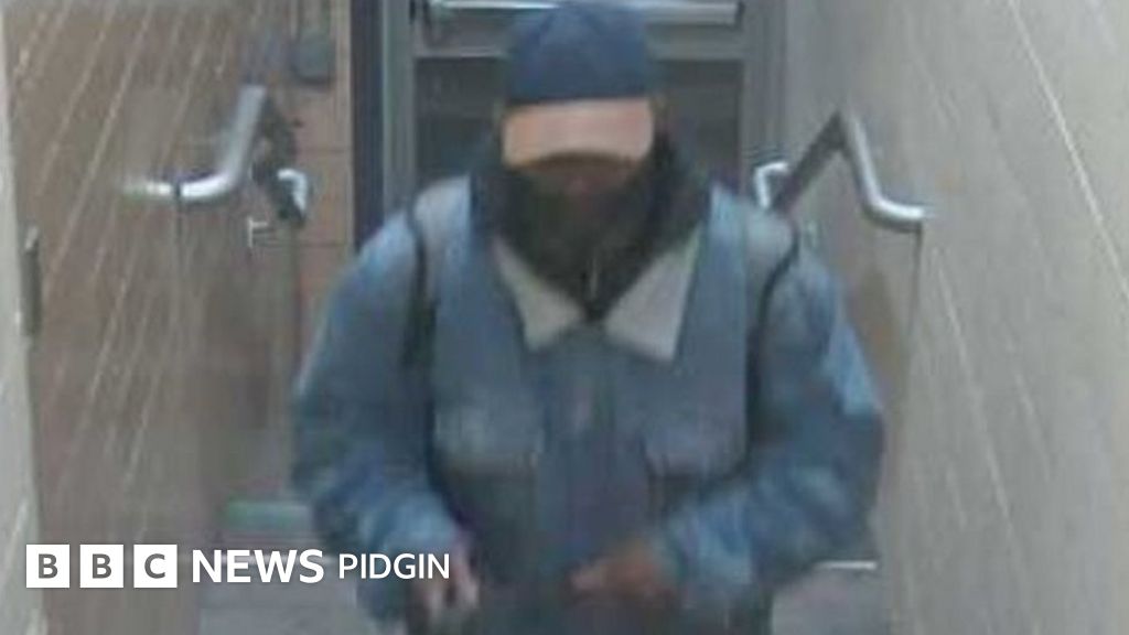 For some fotos dem release earlier, di suspect bin dey wear one denim jacket, one navy baseball cap and red trainers.