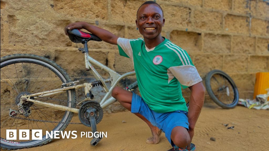 “Na dat time dem discover say I no fit waka again. Na why I dey like dis,” e tok.