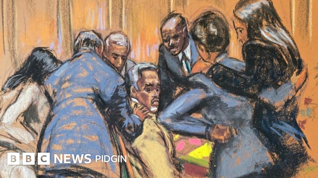 Before Combs comot di courtroom, e bin knee down, put im face inside im chair and appear like say e dey pray. E bin dey shake.