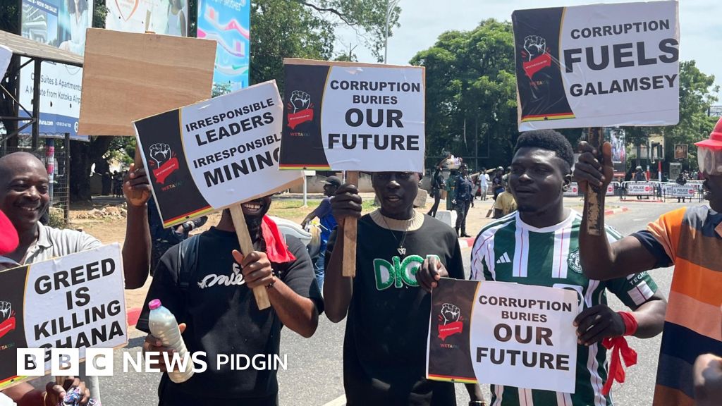 Young pipo for Ghana dey protest illegal mining (galamsey) wey still dey destroy waterbodies and forests for di kontri.