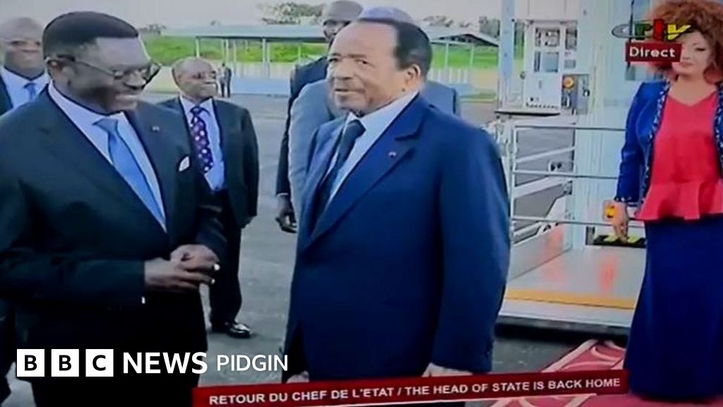 But on Monday afternoon, di state television bin show footage of di president arrival for di airport for di capital, Yaoundé, on one flight from Switzerland.