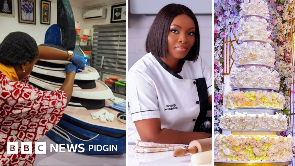 "Dat cake e take me two weeks take do am. E get di time wey afta one week, evri tin wey we don do just fall yakata for ground," she tok.