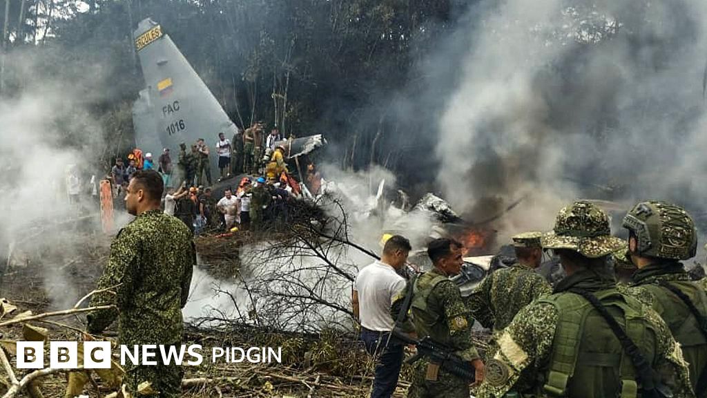 Sixty-six members of di Colombian security forces kpai on Monday wen di Hercules C-130 transport plane crash shortly afta e take-off near di Colombia border wit Peru.