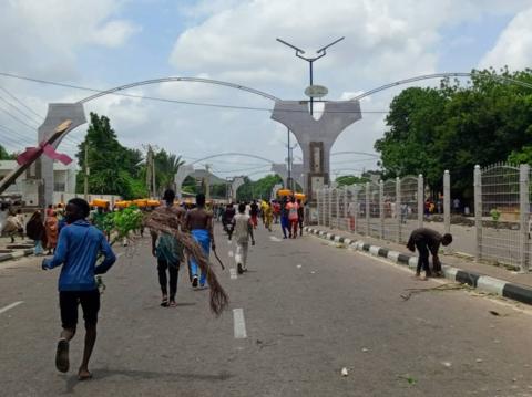 Aside from di protesters wey gada for Iwo Road, one oda protest dey ongoing for di entrance of di University of Ibadan.