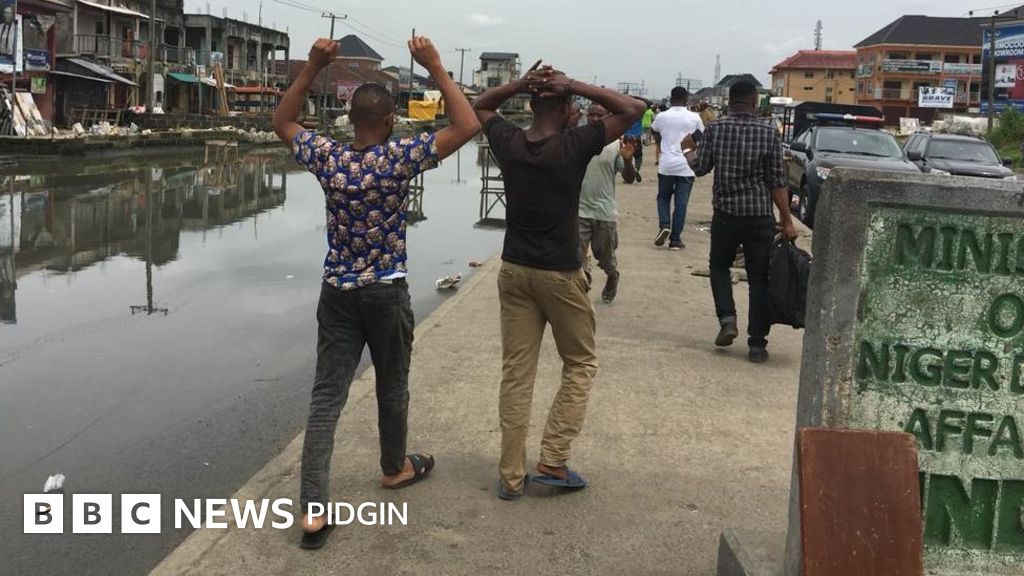 By di time BBC NEWS Pidgin reach di area, police pipo don tanda for di area dey control tins as Pipo wey dey waka gats to raise up dia hands and motor don dey pass for di area.