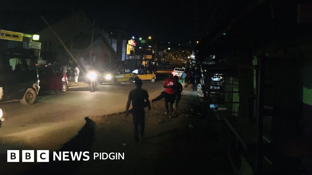Police barricade de area for night. "Pipo no fit pass because we don block all roads for search all side and na for wuna good", one policeman explain for BBC News Pidgin.