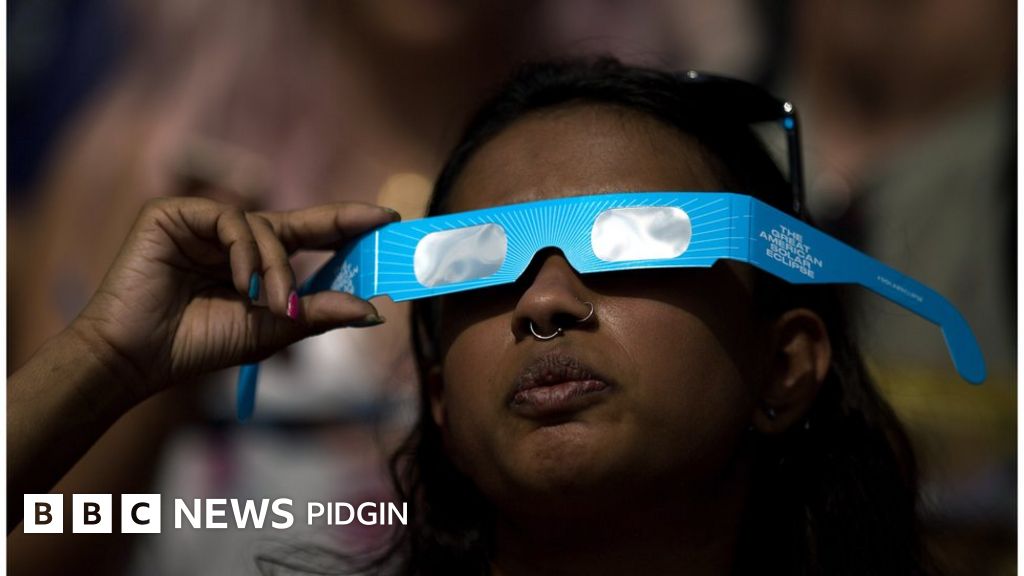 Millions of people enter the path of the darkness, dem wear their special eclipse glasses to look the wonder wey happen for the sky.