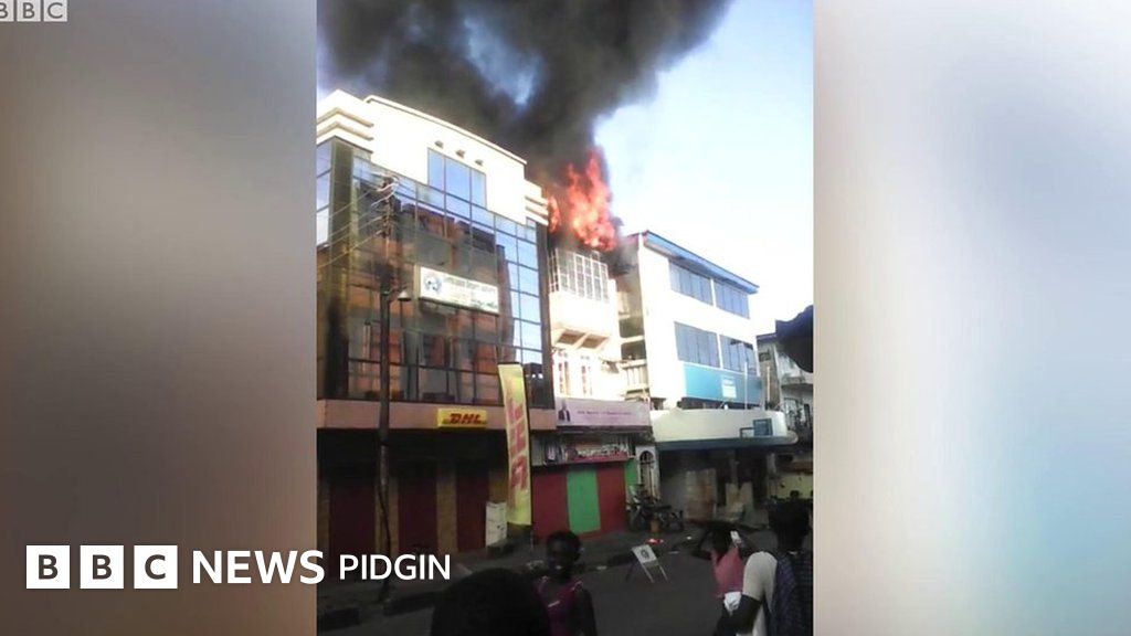 One video don comot wey show as fire dey burn for di headquarters of Sierra Leone's opposition party.