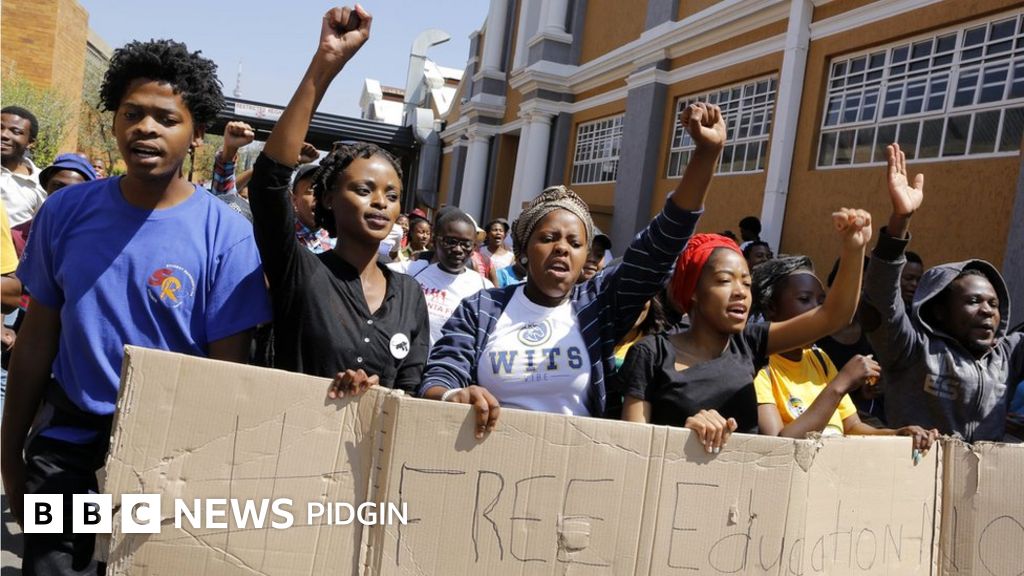Di demonstrations, wey happen with hashtag #FeesMustFall, trouble plenty top universities - sotay President Zuma order say make everybodi leave fees as dem dey for one year.