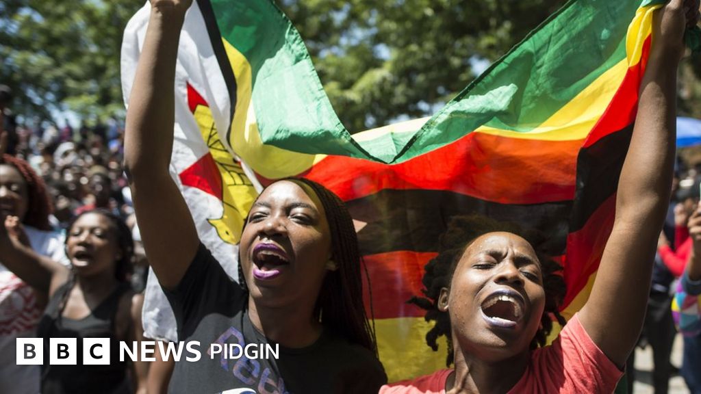 Mugabe don do strong head before say im no go resign, even say military takeover last week, and people do protests.