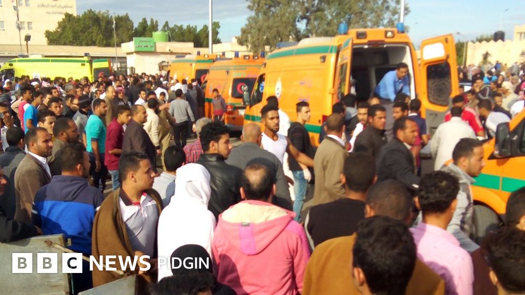 Dem bomb di al-Rawda mosque wey dey for di town of Bir al-Abed, come shoot worshippers as dem run comot.