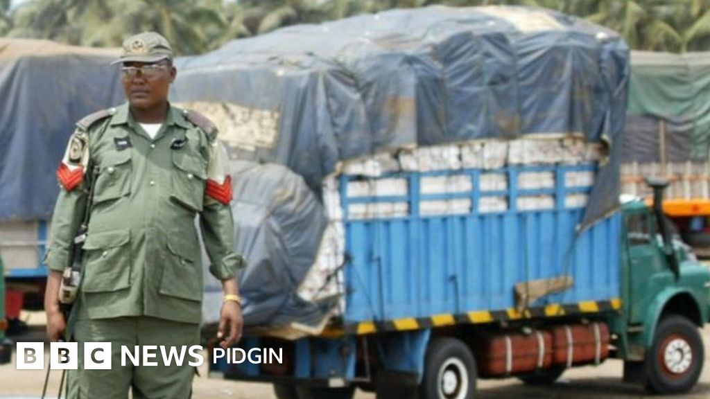 "Di lorry wey dem arrest am for Mubi-Sahuda border road na with 52 bags of rice wey dem use sand cover," na wetin Francis talk.